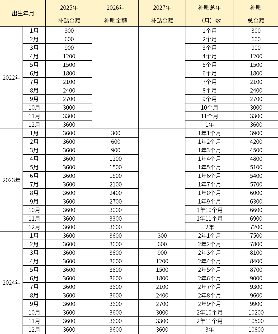 對于2025年1月1日以前出生、不滿3周歲的嬰幼兒,發(fā)放補貼至其年滿3周歲。